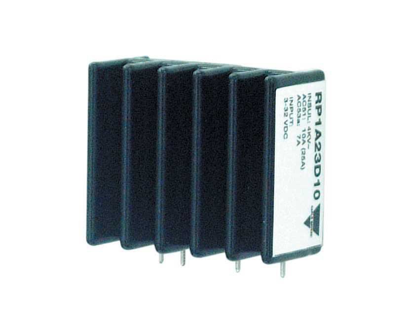 The RP1..D10 is a SSR series for socket or PCB-mounting, providing an ideal interface between logic controls and AC up to 480 V ACrms. The integral heatsink allows switching of a high current in this compact package even drive AC loads such as induction motors. The RP1..D10 can handle loads resistive loads 10 A (25 A with forced air cooling) and inductive loads of 7 A.