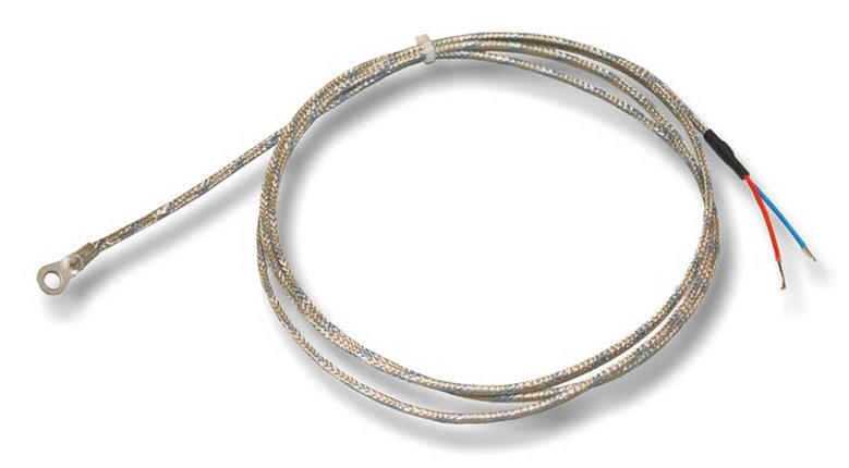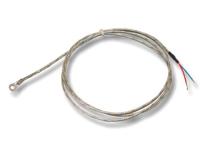 The type J thermocouple consists of an iron positive conductor and constantan (copper-nickel) negative conductor. It is suitable for measuring medium temperatures in non-oxidising environments due to the iron components. The eyelet makes this version easy to mount to a specific reading point with screws.