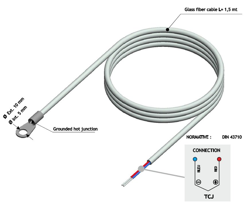 TCJ temperat. probe, with eyelet aperture Ø 5 mm, cable & EASY-UP code. (-200...+400°C). PIXSYS