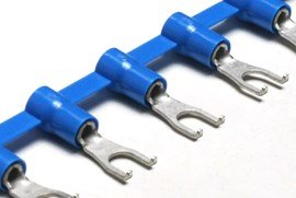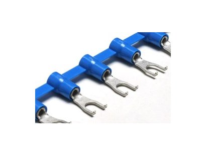 Halogen free insulated hooked fork terminals in roll. Cembre