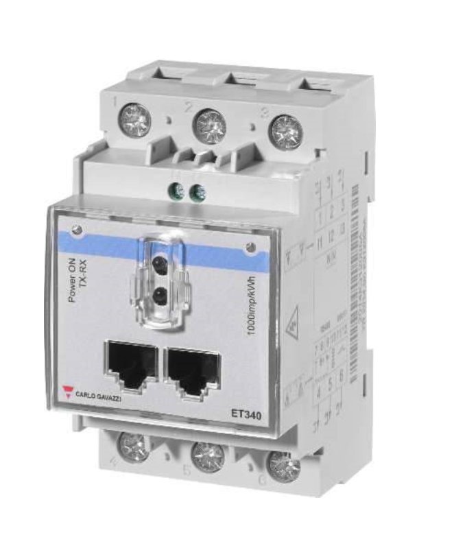 Three-phase energy transducer with dual tariff management up to 65 A in direct connection. Carlo Gavazzi