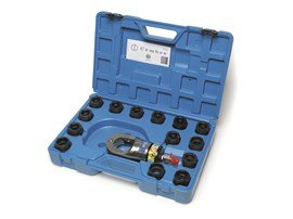 Hydraulic presshead complete with quick automatic coupler for connection to a hydraulic pump with a working pressure of 700 bar max.