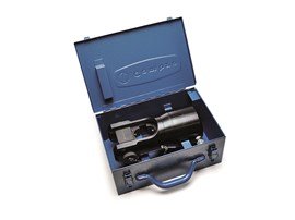 Hydraulic presshead complete with quick automatic coupler for connection to a hydraulic pump with a working pressure of 700 bar max. Adaptor type AU 450 130 D is available as an optional extra enabling the head to utilise the semi-circular slotted dies which are common to most 130 kN tools.