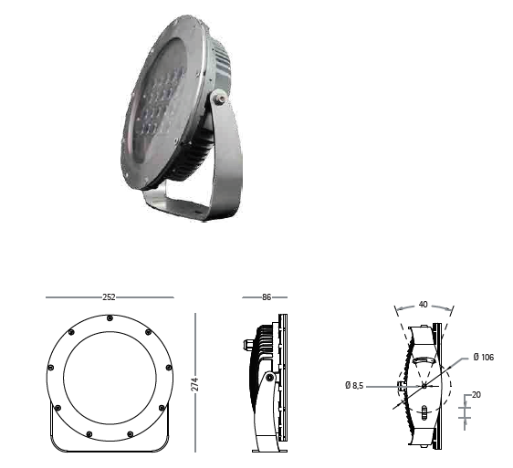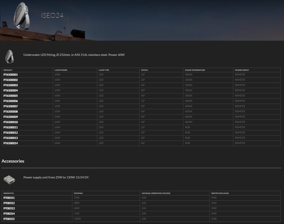 Submersion lighting fixture ISEO24. Stral
