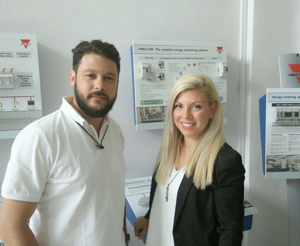 Μιχαλιτσάκος: Ως επί το πλείστον, τα προϊόντα μας καλύπτουν το φάσμα του ηλεκτρολογικού και βιομηχανικού αυτοματισμού. Ενδεικτικά μπορώ να αναφέρω τη νέα γενιά “soft starter” με τεχνολογία NFC για επικοινωνία με το κινητό μας, τα συστήματα διαχείρισης πάρκινγκ και τα ολοκληρωμένα συστήματα διαχείρισης ενέργειας που μας βοηθάνε να μειώσουμε το ενεργειακό κόστος μιας επιχείρησης. Ας δούμε λίγο πιο αναλυτικά τα high tech προϊόντα μας: Από τις εταιρείες Lovato και Carlo Gavazzi προμηθευόμαστε όλων των ειδών τους αισθητήρες, τις μονάδες διαχείρισης ενέργειας, τα συστήματα SCADA, αλλά και ολοκληρωμένα συστήματα οικιακού και κτιριακού αυτοματισμού. Υπάρχει πολύ μεγάλη γκάμα προϊόντων που φέρνουμε και που αποτελούν πραγματικά σύμμαχο των ηλεκτρολόγων στην εξέλιξη της δουλειάς τους. Εργαζόμαστε επίσης εντατικά για την ενημέρωση των ενδιαφερομένων, ώστε να είναι ενήμεροι κάθε φορά για τα πιο σύγχρονα προϊόντα μας. Από την εταιρεία Cabur έχουμε άκρως αξιόπιστα τροφοδοτικά, μετατροπείς αναλογικών σημάτων, isolators, relay modules κ.ά. Στη Cembre βρίσκουμε όλων των ειδών τους connector, μεγάλη γκάμα ηλεκτροϋδραυλικών πρεσών και οπωσδήποτε τον εκτυπωτή για όλων των ειδών τις σημάνσεις.